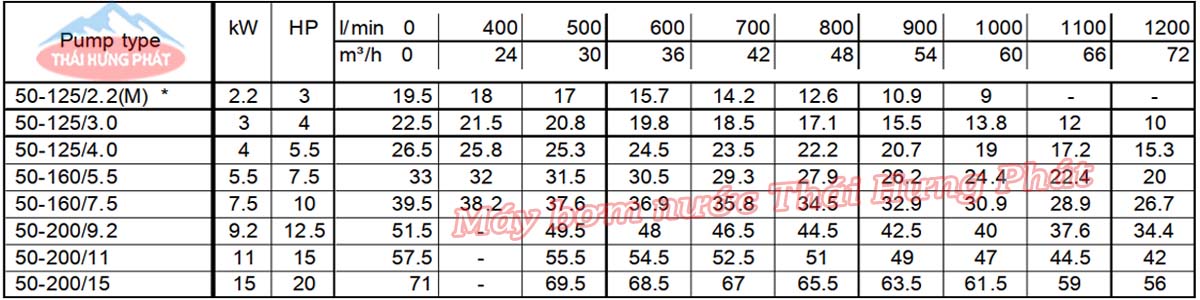 Biểu đồ lưu lượng cột áp của Máy bơm chữa cháy Ebara 3D 50-125/3.0 4HP